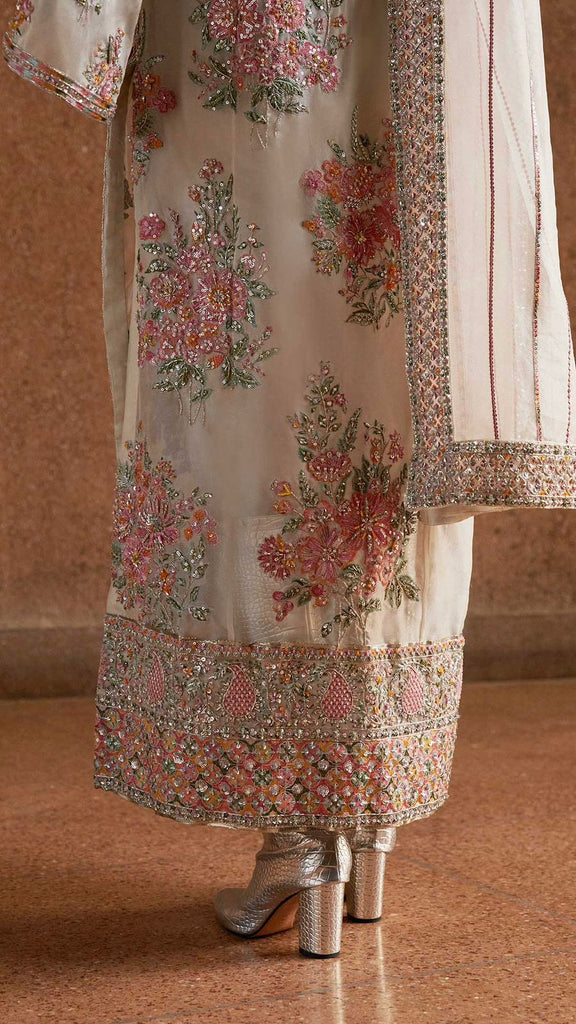 Organza fabric dress with hand made work