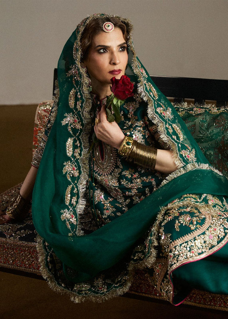 Product Description: Make a bold statement in our emerald green pure raw silk shalwar and short shirt, intricately hand-embellished for a touch of luxury.