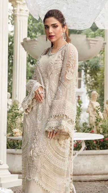 3piece dress chiffon fabric Embroidery work with hand made work Chiffon fabric dupatta Dye Row silk fabric trouser