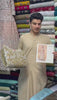 Celeste is a refined organza shirt with a sensual dabka and cut dana handwork neckline, paired with a matching crushed raw silk bottom.